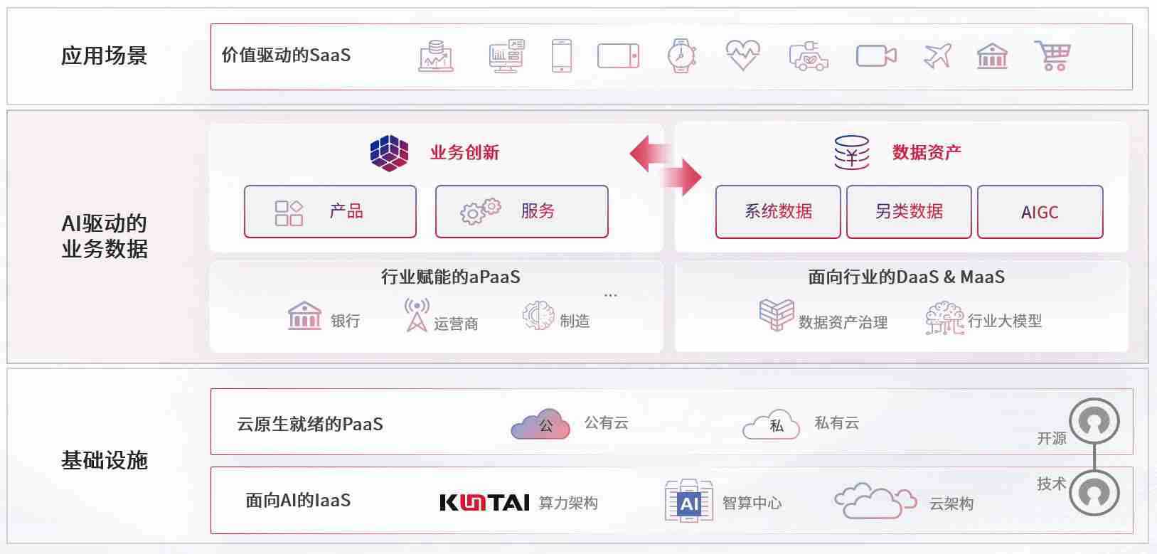数字时代,,,围绕企业数字化转型的关键要素,,,,IM电竞数码开创性的提出数云融合战略和技术体系框架,,着力在云原生、、数字原生、、、、AI原生和信创产业上架构产品和服务能力,,,为处在不同数字化转型阶段的快消零售、、、、汽车、、、、金融、、、、医疗、、、政企、、教育、、、、运营商等行业客户提供泛在的敏捷IT能力和融合的数据驱动能力,,,构建跨界融合创新的数字业务场景和新业务模式,,,助力企业级客户建立面向未来的核心能力和竞争优势,,,全面推动社会的数字化、、、智能化转型升级。。。