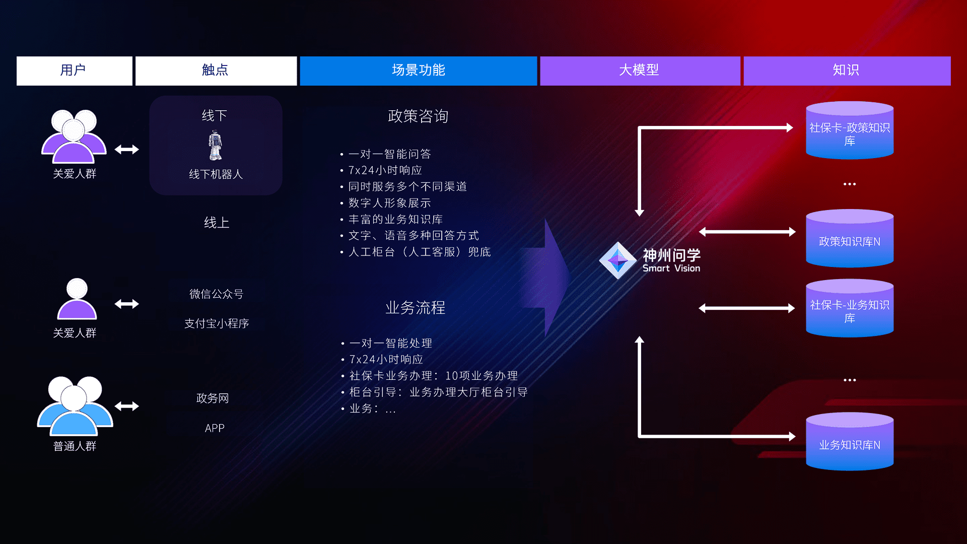 • 线上线下全覆盖:线上提供微信公众号、、、支付宝小程序、、、政务网、、、app多种渠道,,,,与线下机器人形成完整服务体系。。